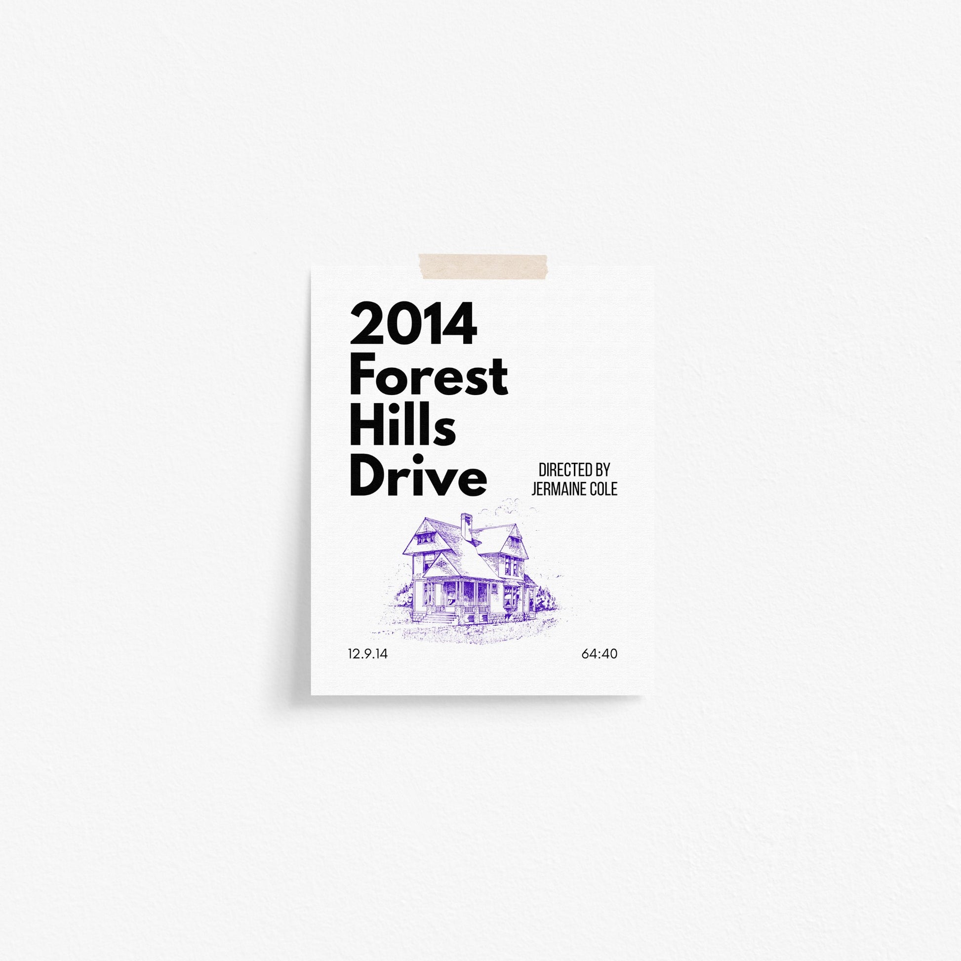 Celebrate one of hip hop’s most iconic albums with this original art print inspired by J. Cole’s 2014 Forest Hills Drive. Featuring a clean, minimalist design and hand-illustrated house graphic, this print is a tribute to the storytelling, soul, and legacy of Jermaine Cole’s breakthrough masterpiece.