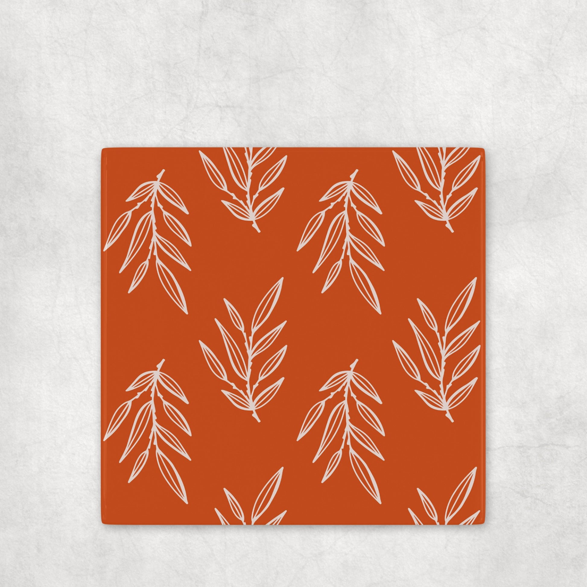 Bring a touch of warmth and nature-inspired charm to your home with our Terracotta Vines Botanical Leaf Ceramic Coasters. Featuring a modern white leaf pattern on a rich terracotta orange background, these coasters are perfect for autumn vibes, boho decor, or anyone who loves bold, earthy aesthetics.
