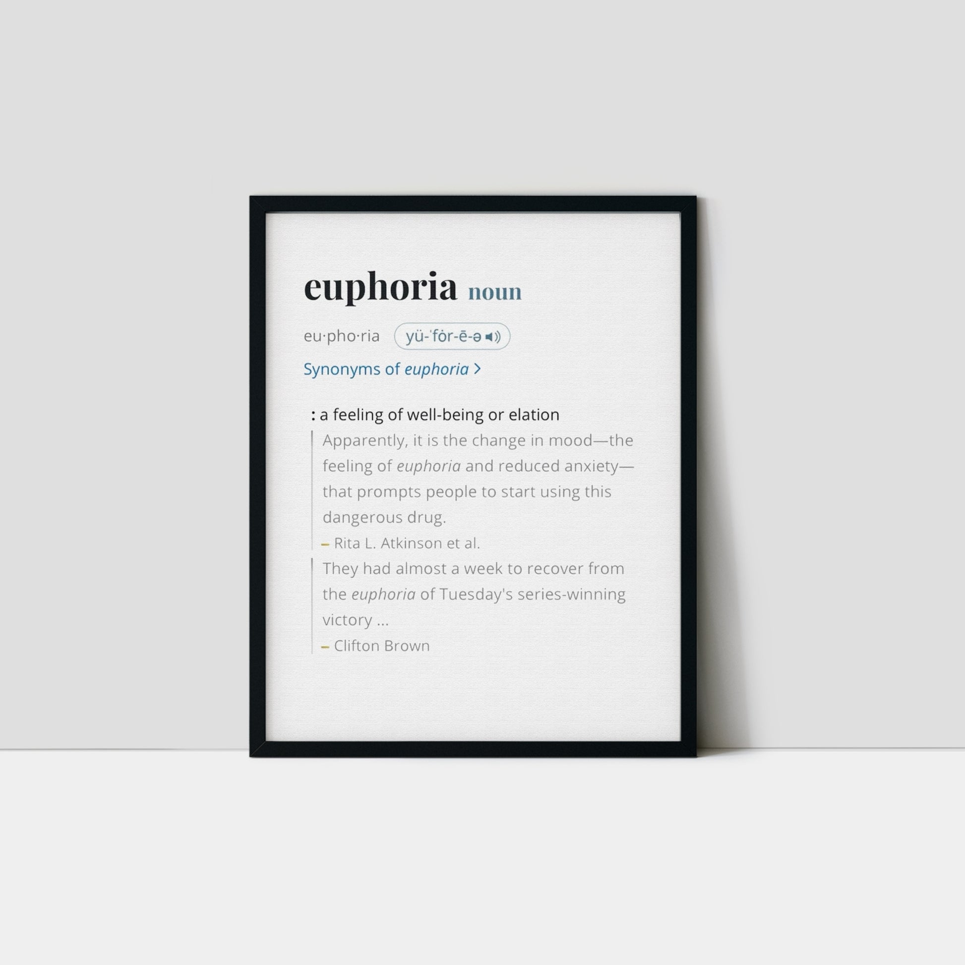Take home a piece of Hip Hop history with this cover art print of Kendrick Lamar’s viral diss track “Euphoria,” part of the explosive rap beef with Drake that had the world buzzing. Styled like a dictionary definition, this print captures the layered emotion of the track, clever, pointed, and delivered with poetic force.