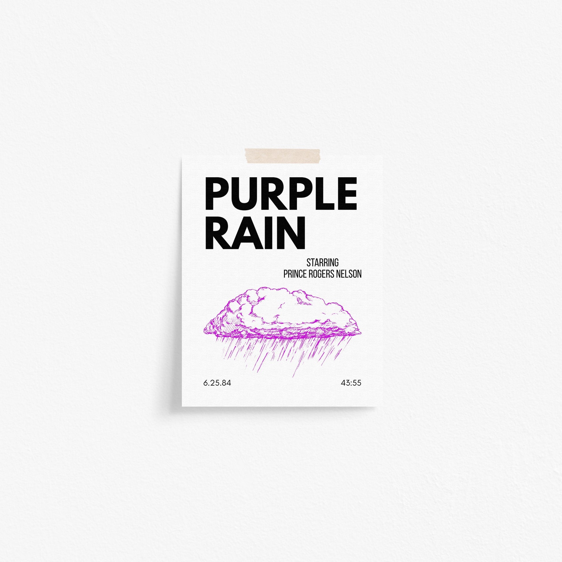 Honor the legacy of a music icon with this minimalist Purple Rain art print, inspired by Prince Rogers Nelson’s groundbreaking 1984 studio album and film. This design features a raincloud illustration that captures the emotion, artistry, and power of a record that changed the sound of pop, soul, and rock forever.