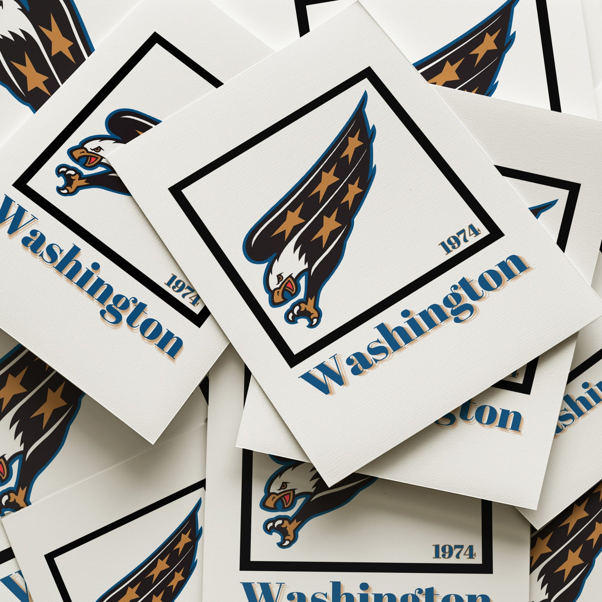 This minimalist Washington Capitals art print is a clean, modern tribute to the franchise's legacy. Designed with hockey fans and home decor lovers in mind, this print features the iconic Capitals logo inside a black border, complete with the team’s founding year and “Washington” in a retro-inspired font.